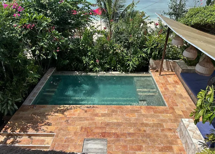 Ke Rensia Private Pool Villas Gili Air offers a 6-room accommodation 4.2 km from Gili Divers. Extras include a refrigerator and tableware in a kitchenette and a bidet, a walk-in shower, and a separate toilet in a bathroom.